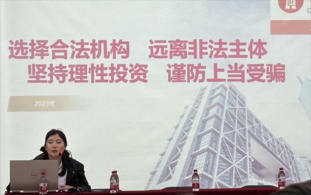 世纪证券的田海洋顾问以及恒泰证券的宋倩真老师,分别对当前社会上存在的非法集资、金融诈骗、电信网络诈骗以及校园贷等侵害投资者及人民群众合法权益和危害金融稳定安全的行为,向员工们进行了详尽揭示。并结合现实案例揭示了不法分子针对老员工群体实施的金融诈骗行为,呼吁同学们树立正确消费观和金钱观。