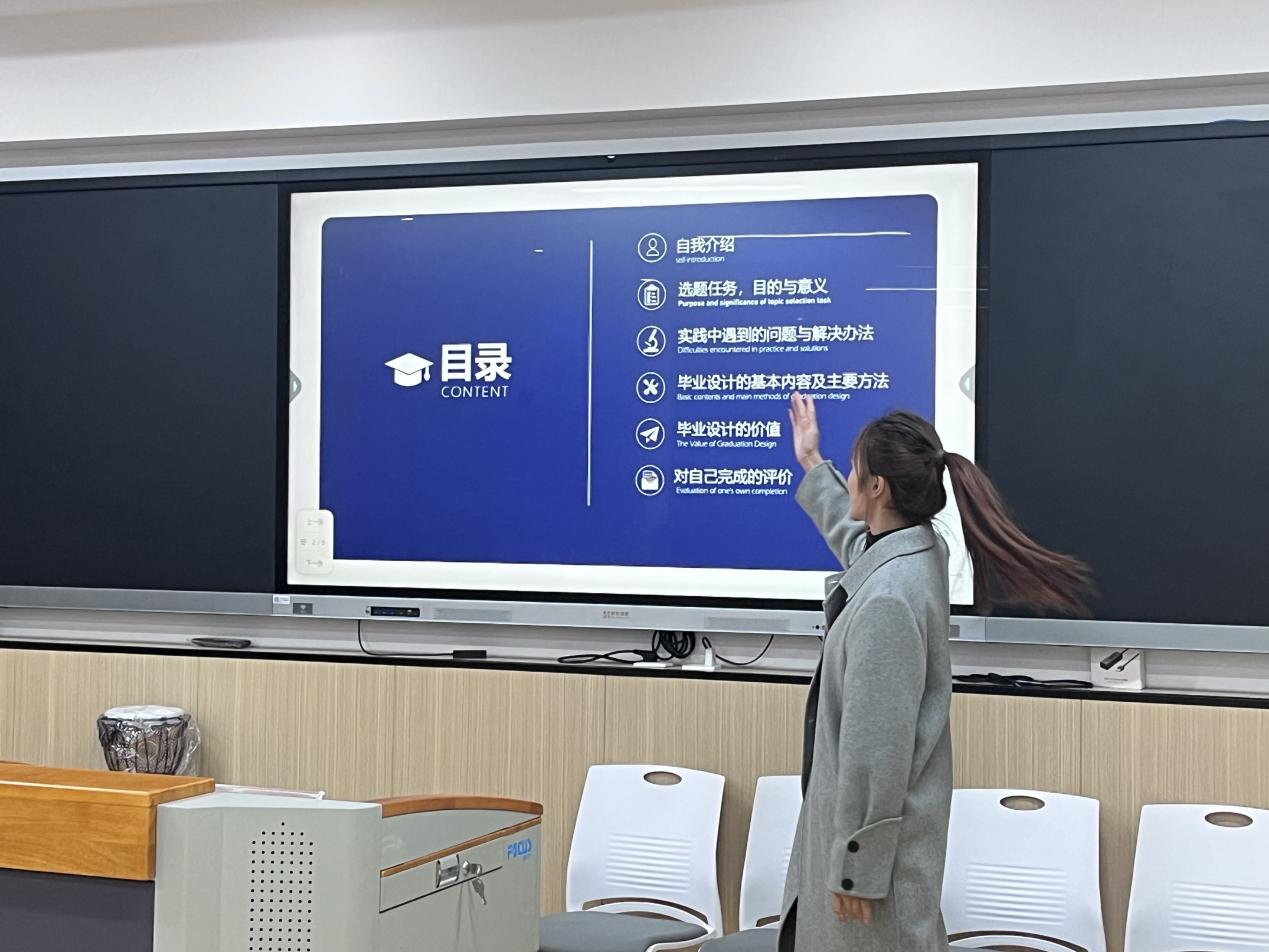 答辩老师本着严谨认真的态度,听取同学们的现场陈述,并仔细审阅材料,从多个角度有针对性地向答辩人抛出相关问题,并针对同学们毕业设计中的不足之处给出中肯的修改意见。