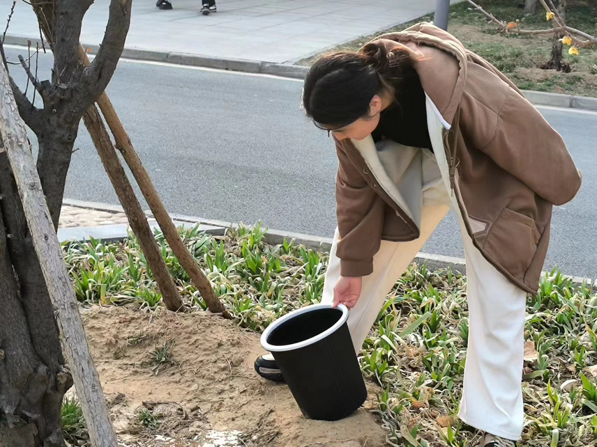 活动现场热火朝天,同学们分组进行捡垃圾、落叶,养护绿化、浇水的活动,同学们手持垃圾袋、水桶,进行浇水育苗,齐心协力,让幼苗重焕生机,校园里呈现出和谐、生机勃勃的景象。参加活动的同学们热情洋溢,干劲十足,欢声笑语在校园中回荡。