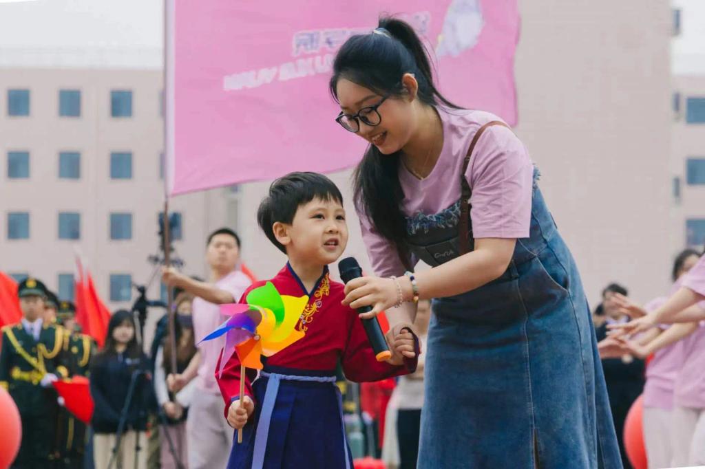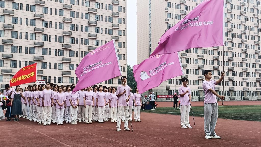 国旗护卫队迈着铿锵有力的步伐,手举耀眼夺目的五星红旗,拉开了校运会的序幕。在开幕式上,必一运动官网方阵迈着整齐的步伐步入会场,紫色的院旗迎风飘扬,她们身着整齐的服装,上面印有必一运动官网的吉祥物——‘哎呦’。‘哎呦’是一只活泼可爱的小龙,谐音“爱幼”。它象征着必一运动官网学子们爱护儿童、育己育人、健康活泼、向阳而生。接下来她们为全校师生呈现了精彩的表演《舞动春天》,博得了现场雷鸣般的掌声。