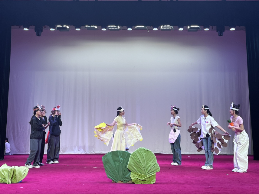 为了这次汇报演出,同学们进行了充足的准备,每个小组根据剧情自己动手制作服装。现场表演风格多样、角色形象鲜明,同学们精彩的故事情节、生动的表演,以物喻人,传递了正能量的价值观。演出现场气氛热烈,台下观众全神贯注,不断传来阵阵掌声,本次汇报演出赢得了老师和同学们的肯定和赞扬。