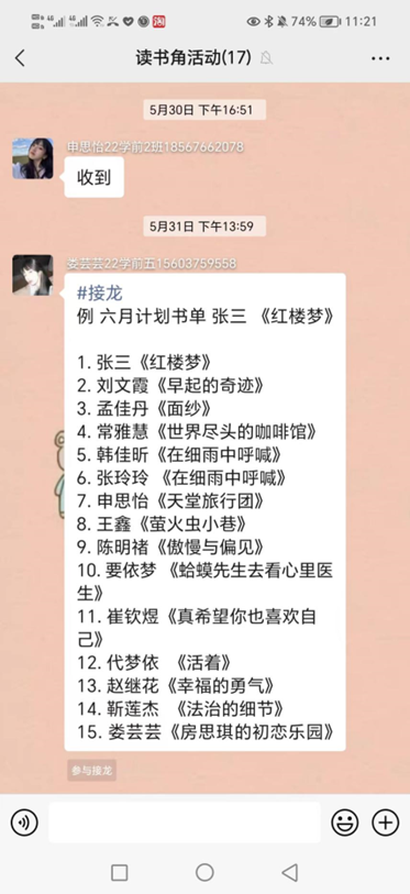之后同学们逐一介绍这个月自己所读的书籍主要内容以及自己的所思所想,大家各抒己见,气氛十分轻松活跃。交流会后大家又做出了六月阅读计划。
