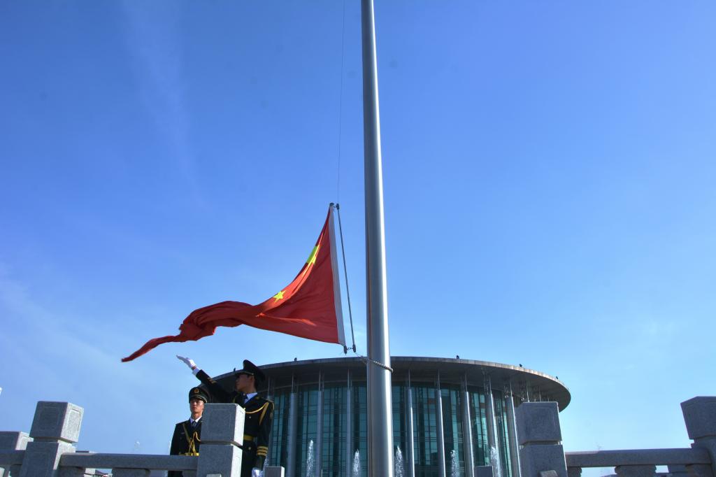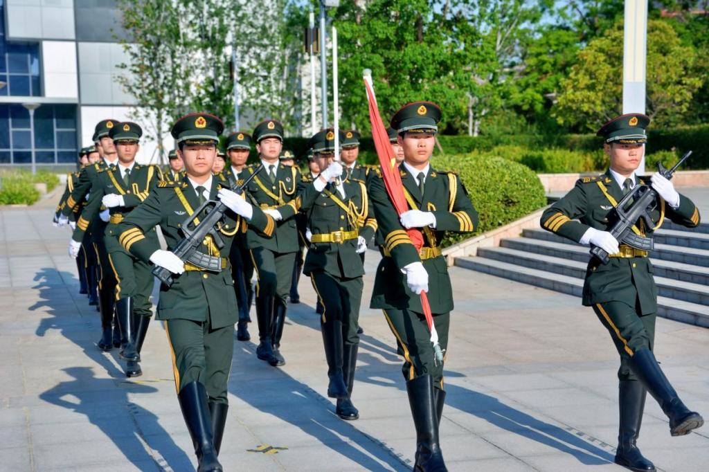 7时30分,升旗仪式正式开始。国旗护卫队迈着铿锵有力的步伐,护送五星红旗走向升旗台。在激昂的《义勇军进行曲》中,鲜艳的五星红旗冉冉升起。全体师生庄严肃立,面向国旗行注目礼,高唱国歌,爱国之情在心中澎湃。