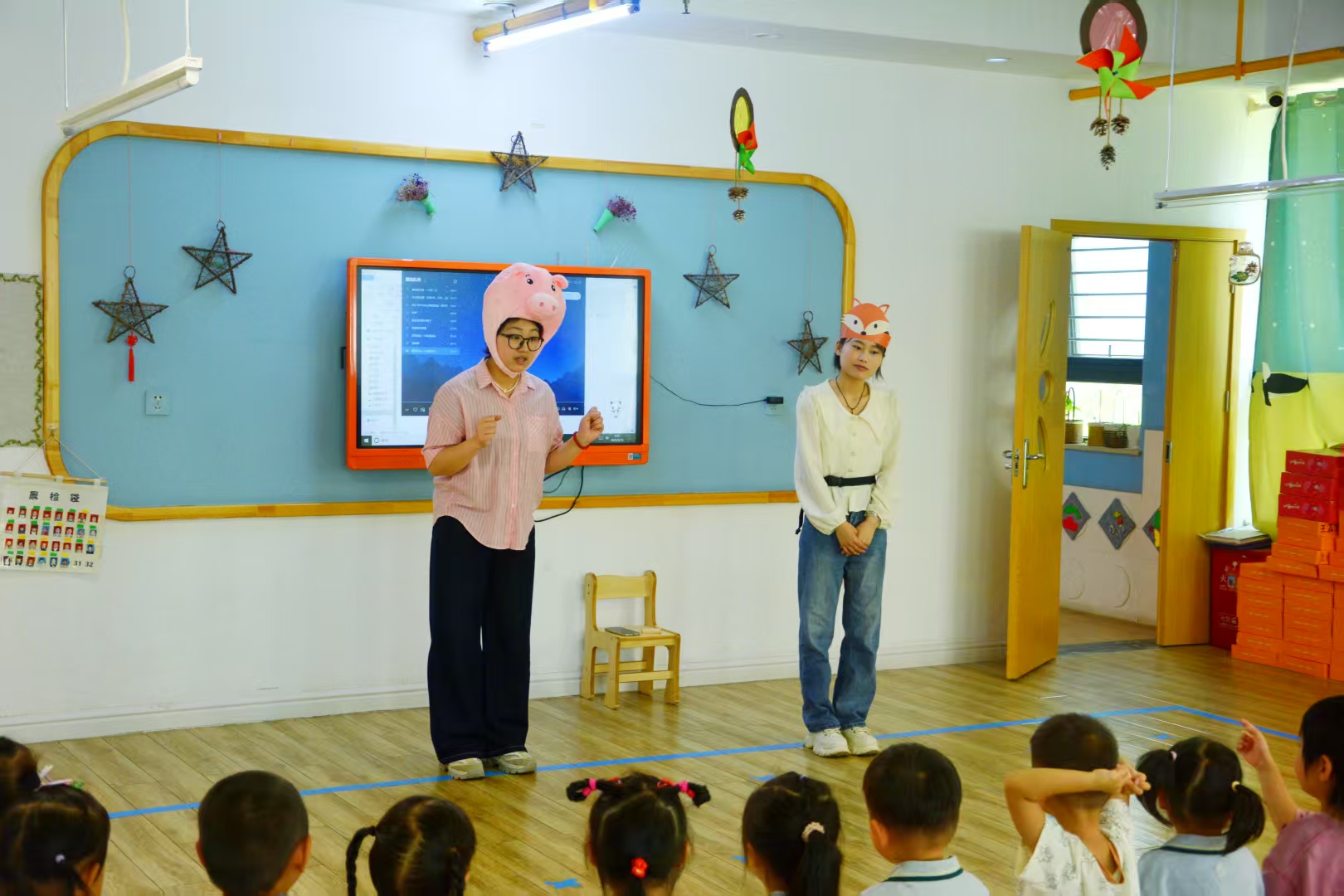 活动当日,思博特国际幼儿园园长热情迎接师生一行,并在园所门口与大家合影留念。随后园长精心安排了两个小班、两个中班及一个大班,作为本次故事分享的实践课堂。必一运动官网的学子们迅速投入角色,走进不同班级,化身“故事魔法师”,以生动的语言、夸张的肢体动作和丰富的表情,将故事中的角色演绎得活灵活现。在互动环节,学子们巧妙地引导幼儿思考、提问,鼓励孩子们积极参与故事讨论,现场气氛热烈,欢声笑语不断。孩子们专注的眼神和热情的回应,让参与活动的学子们感受到了幼儿教育工作的独特魅力。