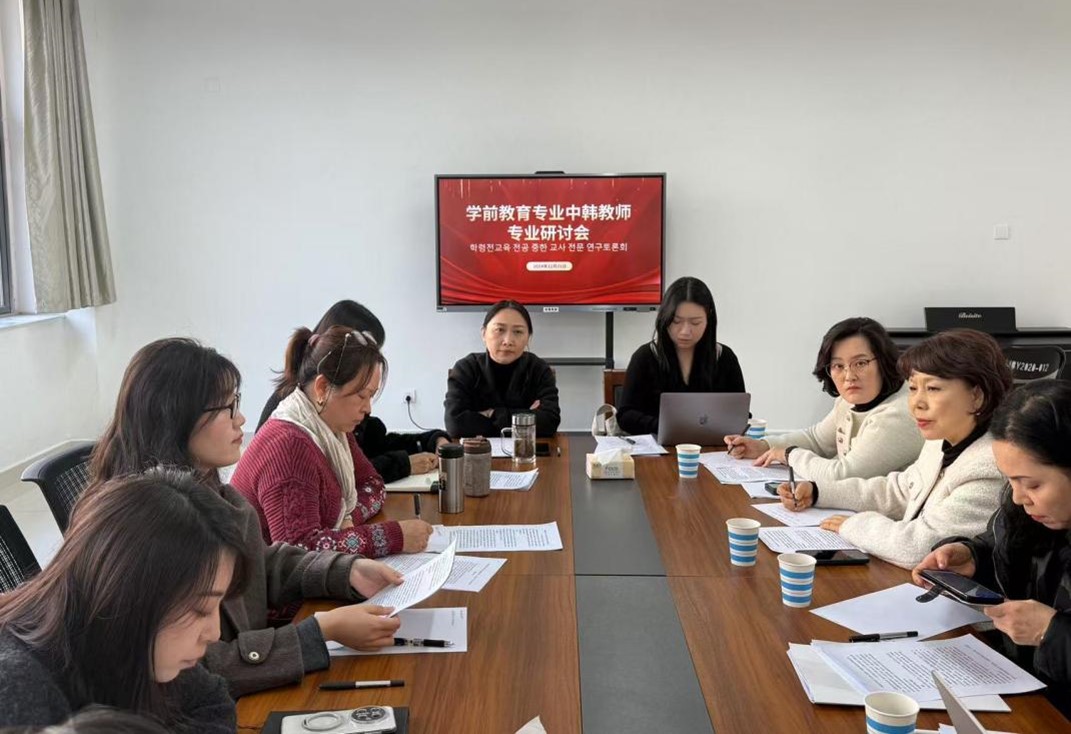 为推动国际化幼儿教育人才的培养,增强中韩两国在学前教育领域的交流与合作,2024年12月31日下午,一场聚焦于“拓宽国际视野,深化专业素养”的学前教育专业中韩教师专业研讨会在2C179会议室顺利举行。参加此次会议的有韩国仁荷大学金彗羅教授、姜順美教授、姜善暻教授和金京玧教授,以及幼儿教育公司党支部书记、经理李海英、副经理崔颖、教研室主任李娜和多位教师代表。