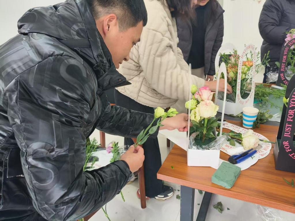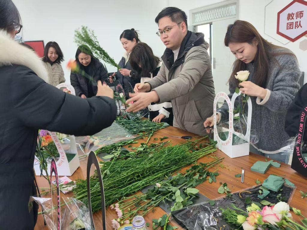 活动伊始,公司领导向全体教师送上节日祝福,对教师们的辛勤付出予以肯定。现场精心布置,备齐鲜花与工具。活动中,女教师们挑花枝、搭色彩、修枝叶,创作出独具匠心的插花作品,饱含着对美与生活的热爱。