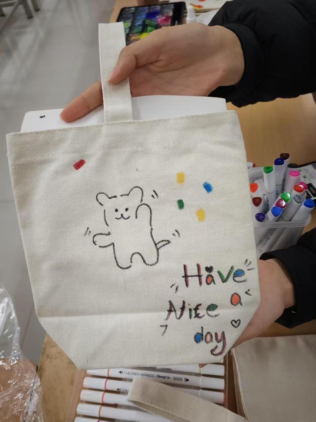 为让同学们在节日感受手工乐趣,展现创意,公司筹备了DIY帆布包活动。活动现场,同学们迫不及待动手创作,互相交流、分享灵感。几小时后,普通帆布包变得独一无二、满是艺术感。大家拎着成品拍照,脸上尽是满足与自豪。