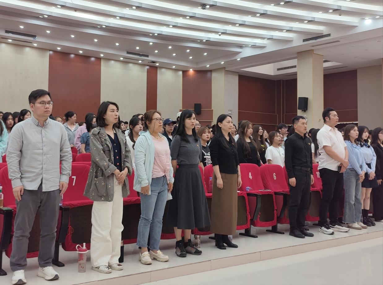 大会在庄严激昂的国歌声中拉开帷幕。全体师生肃立,齐声高唱国歌,现场气氛庄重而热烈。