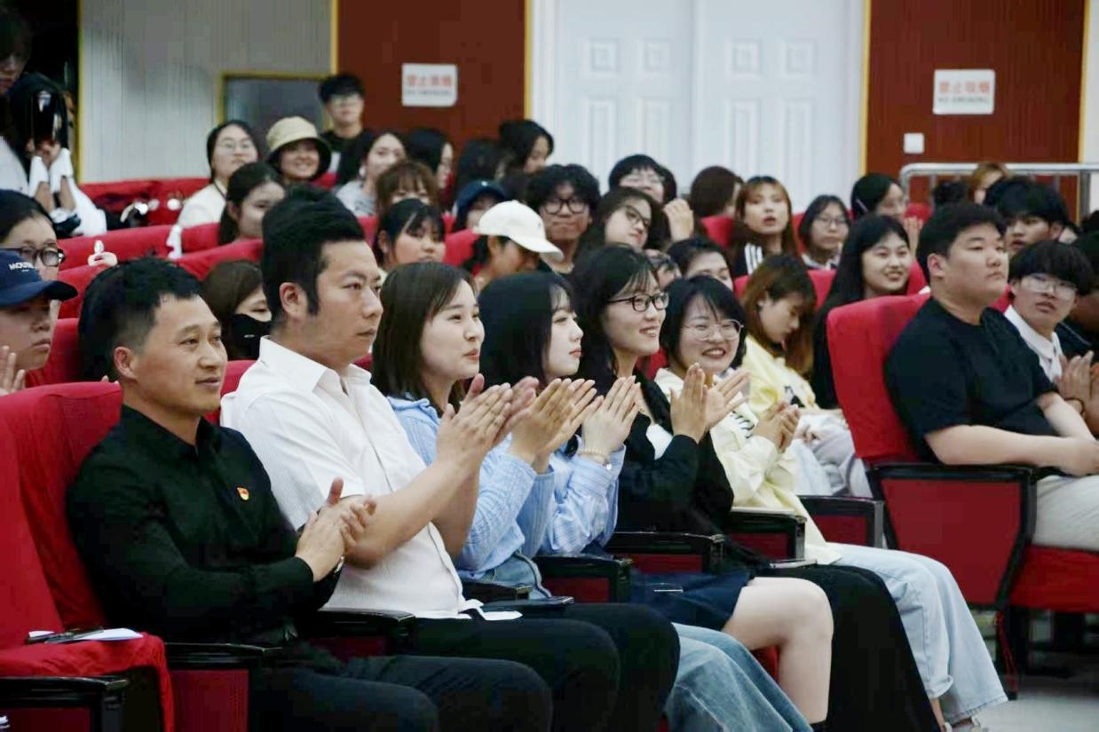 国歌奏唱完毕,李海英发表讲话。她讲述了五四运动的历史意义与精神内涵,激励青年学子以五四精神为指引,坚定信念,勇担使命,在学思践悟中成长为民族复兴的时代新人,李海英的讲话赢得了现场阵阵掌声。