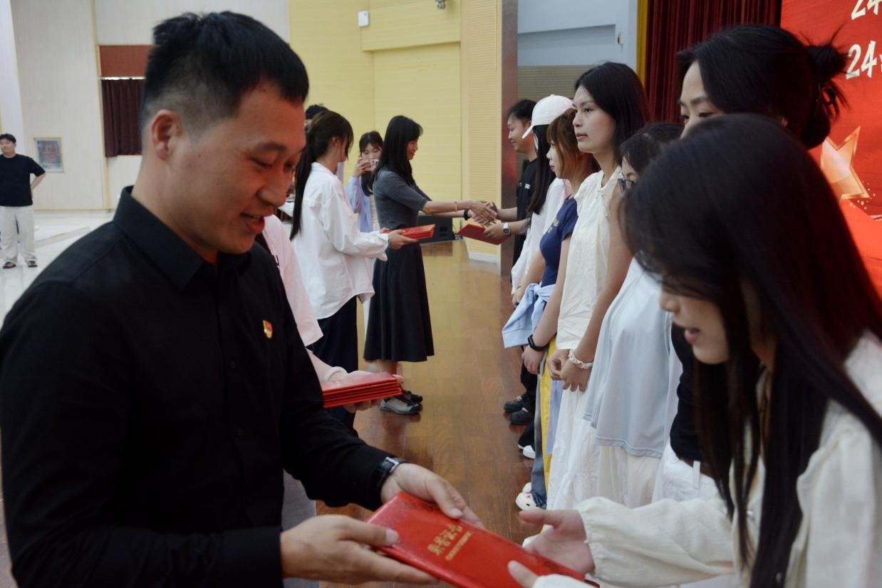 随后,23级优秀员工干部郑景新和优秀员工代表杨艺卓上台发言。她们结合自身学习与成长经历,分享了在奋斗路上的感悟与收获,表达了对公司和老师的感恩之情,并号召全体同学不负韶华,砥砺前行,用青春和汗水书写属于自己的精彩篇章。