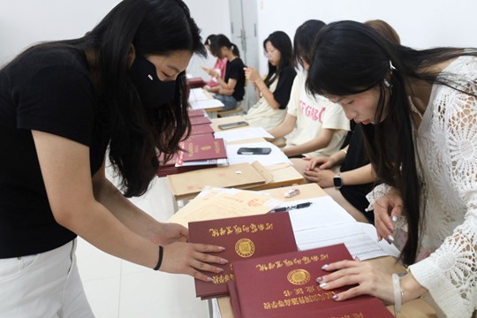 堆叠在桌上的毕业证书泛着柔光