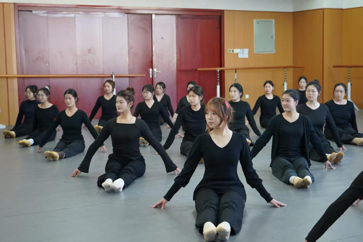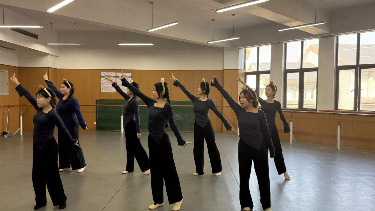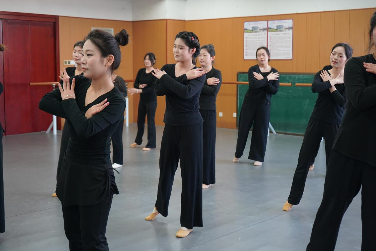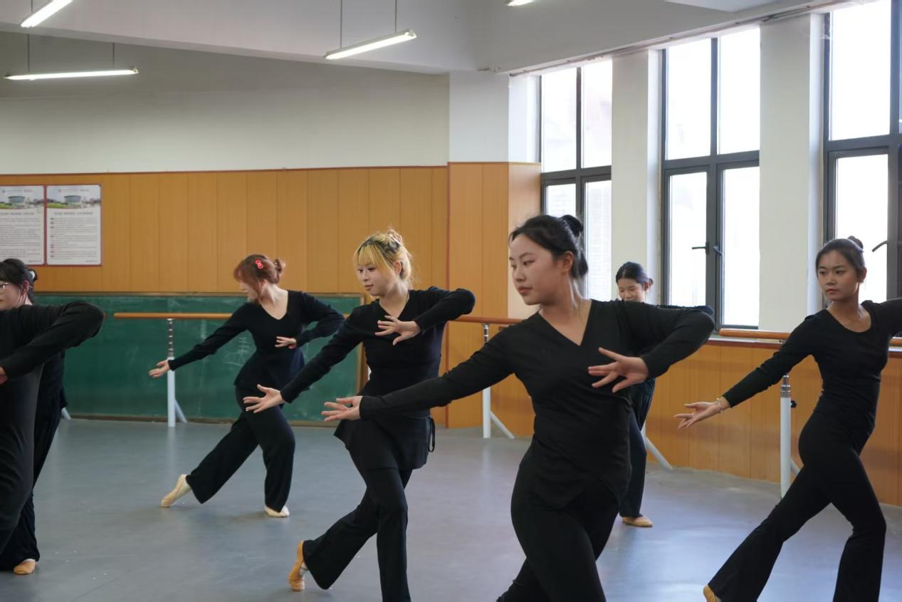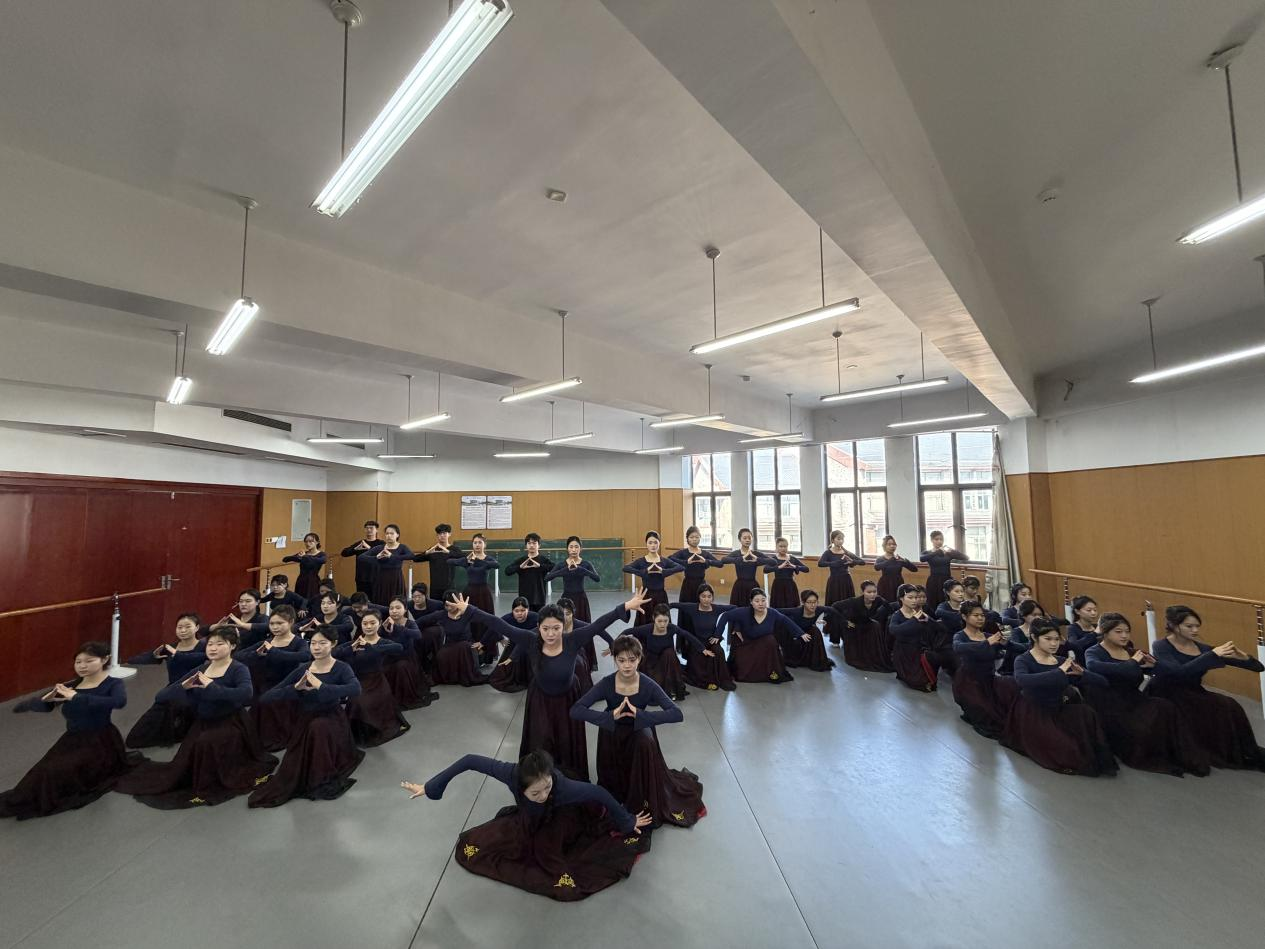 展演在古典舞基训考核中拉开序幕。同学们气韵连贯、动作规范,于一招一式中初显古典舞的含蓄与张力,扎实的身体控制与韵律把握,充分展现了课程在形体塑造与气质培养上的扎实成效。
