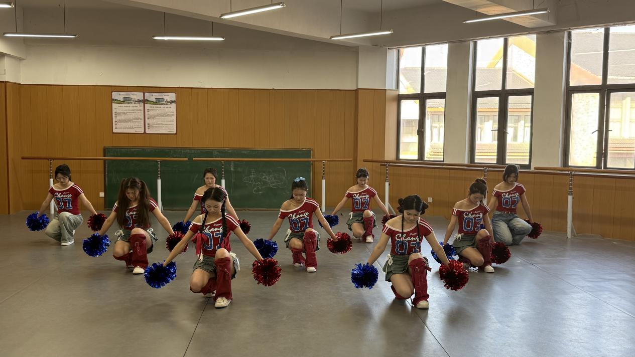 2. 幼儿舞蹈童趣盎然:紧密贴合未来职业场景,《加油!AMIGO》《健康歌》《勇气大爆发》《大家一起喜洋洋》等多支啦啦操、儿童舞蹈活泼上演,同学们以充满童真的演绎,展现了未来幼师必备的亲和力、表现力与节目编排意识。