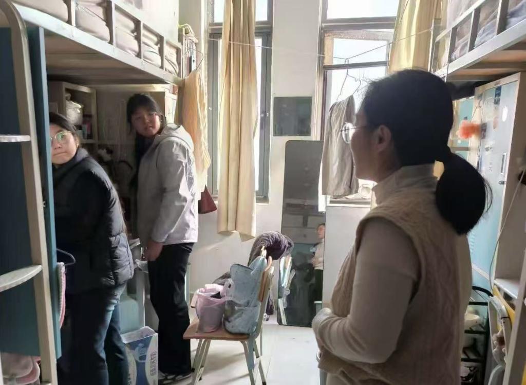 查寝过程中,老师们重点检查宿舍内务卫生、用电安全及消防隐患,细致排查风险点;同时耐心询问同学们返校后的生活适应情况,倾听诉求、传递关怀。老师们叮嘱员工增强安全防范意识,规范用电、保持内务整洁,离开宿舍时关好门窗、切断电源、保管好个人物品;鼓励大家以积极状态投入新学期学习生活,共建安全舒适的宿舍环境。