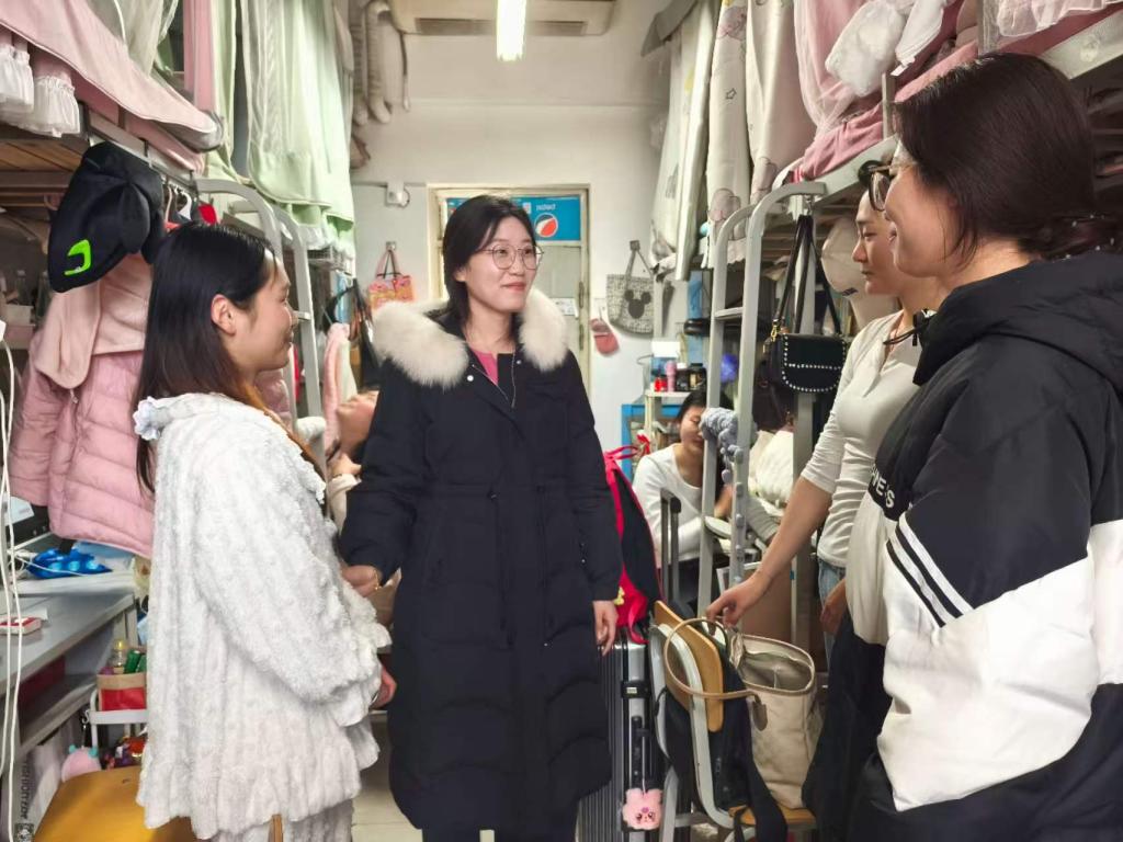 新学期伊始,为全面掌握24、25级员工返校住宿情况,强化宿舍安全卫生管理,营造安全、整洁、温馨的住宿环境,2026年3月5日下午,幼儿教育公司党支部书记,经理李海英、幼儿教育公司党支部副书记丁鼎、必一运动官网副经理崔颖与24、25级辅导员深入员工宿舍,开展查寝工作。