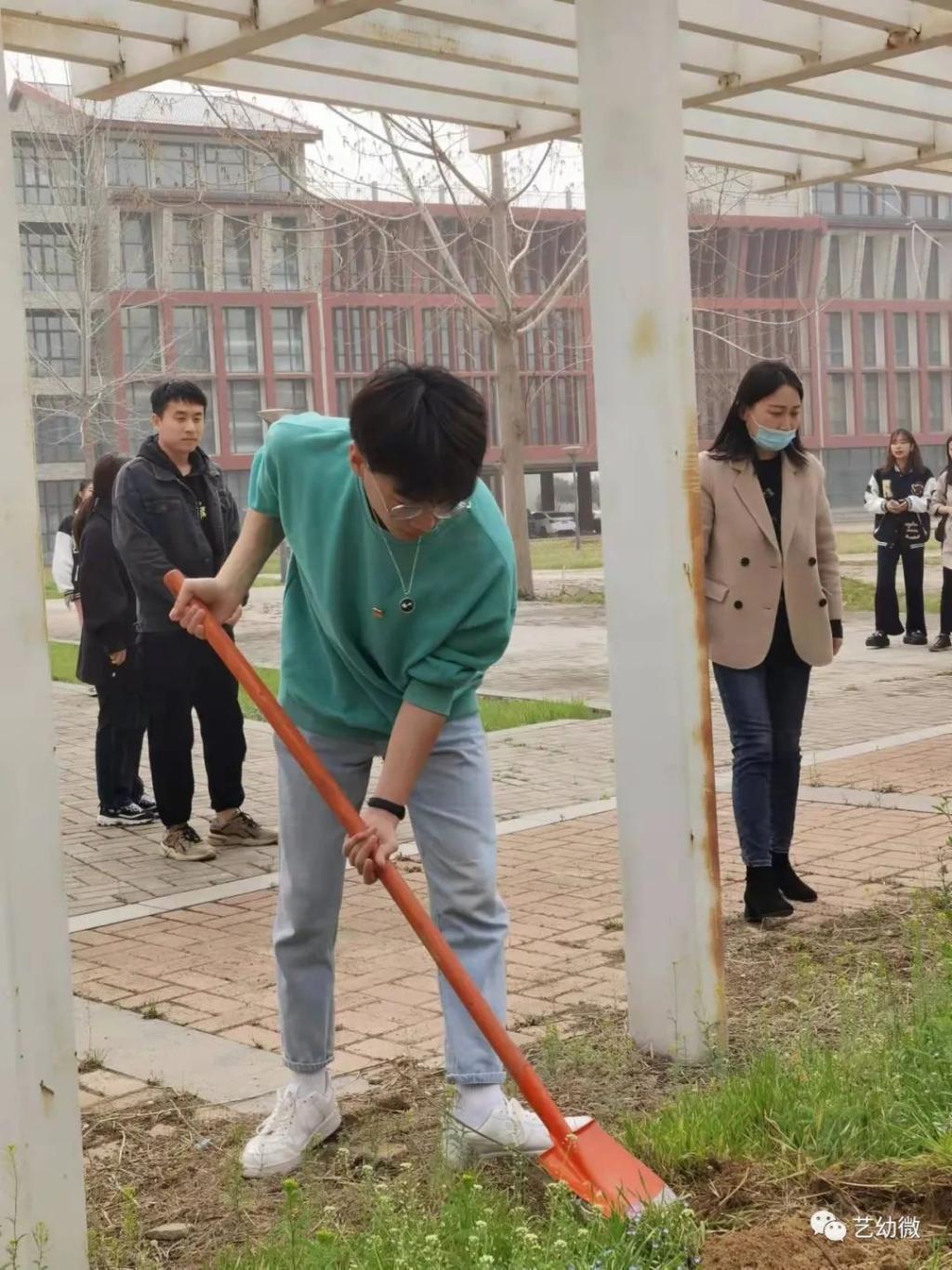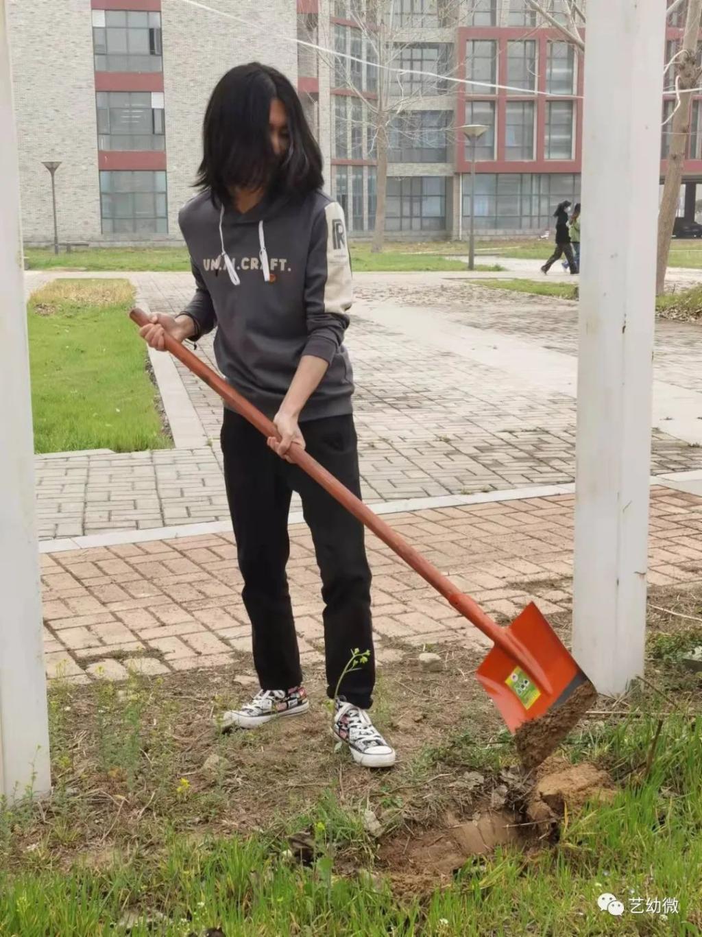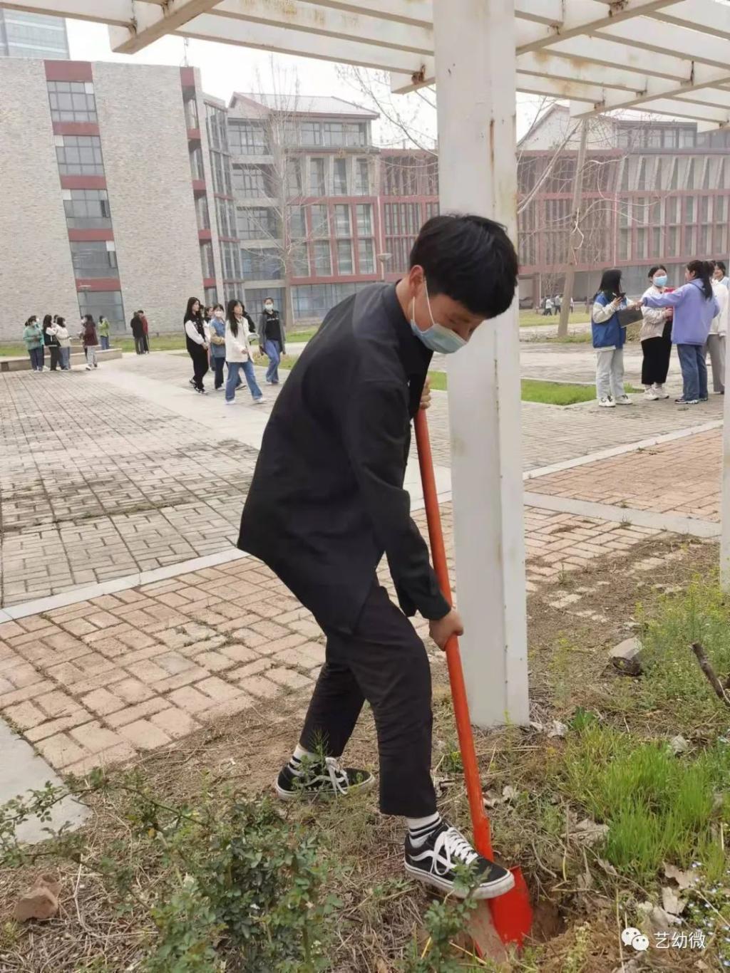 为了提高同学们环境保护意识,锻炼同学们的劳动能力。必一运动官网在3号教学楼南面空地上开展了“碳”路美好,共植未来——植绿护绿志愿服务活动。