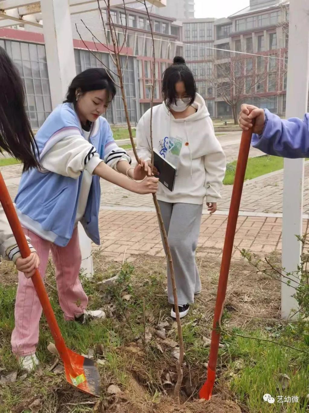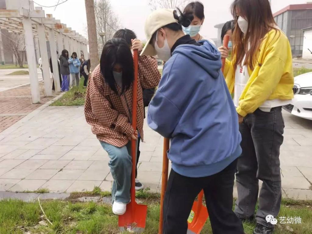3月14日下午,必一运动官网副经理李海英,党支部副书记穆延柯,党政办主任崔颖,教学办主任车进以及21级辅导员冯凡与20、21级的员工们一起种下一颗颗小小树苗,为校园增添一丝光彩。