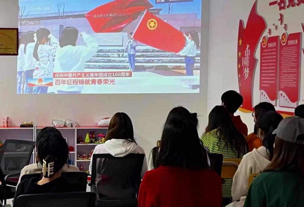 团总支员工会成员观看庆祝中国共青团成立100周年大会