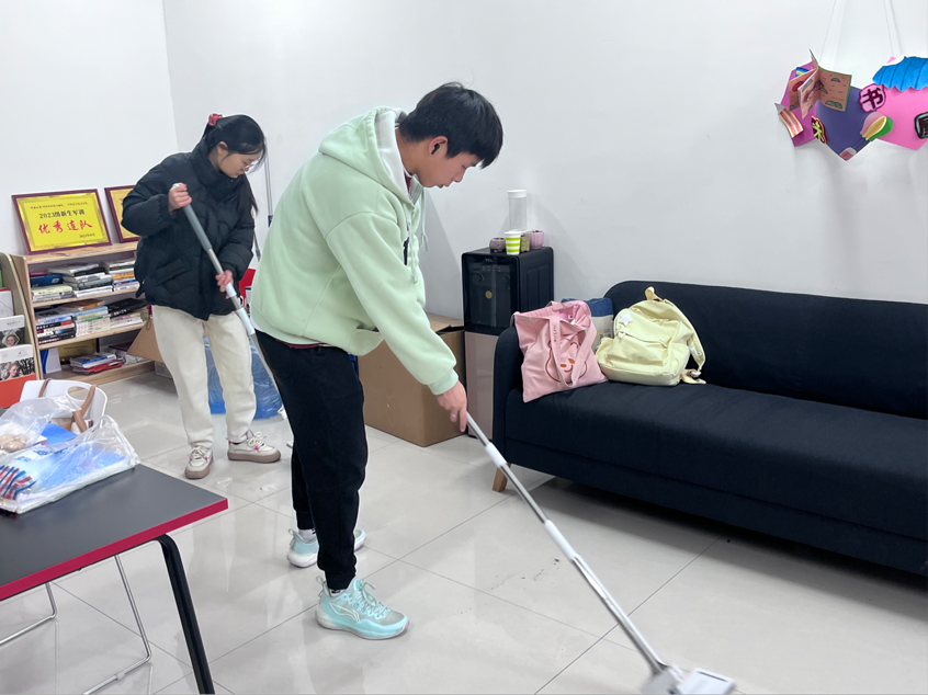 同学们团结协作,对办公环境及校园环境进行清扫,重点关注每个卫生死角,严格落实分工,保证效率,力求不错过每一个角落,将垃圾清理落实到位。共同营造了干净整洁的学习和办公环境。