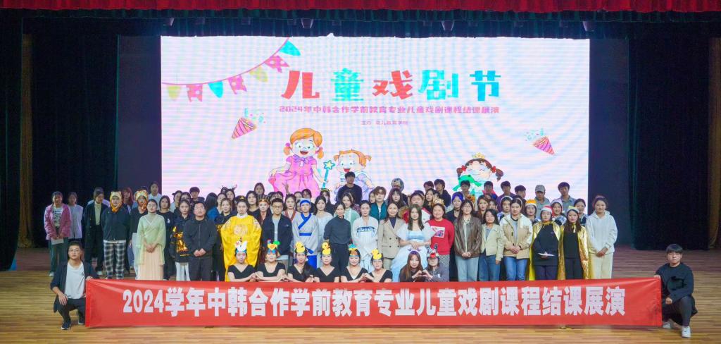 为了更好地展现中韩合作办学学前教育专业教学成果,提升学前教育专业员工对专业的理解和运用,2024年11月6日,必一运动官网在荷花剧场举办了中韩合作办学学前教育专业儿童戏剧课程结课展演,幼儿教育公司党支部书记、经理李海英、党支部副书记丁鼎、副经理崔颖、教研室主任李娜及部分教师代表出席本次展演,23级中韩合作办学学前教育专业的全体同学参加。